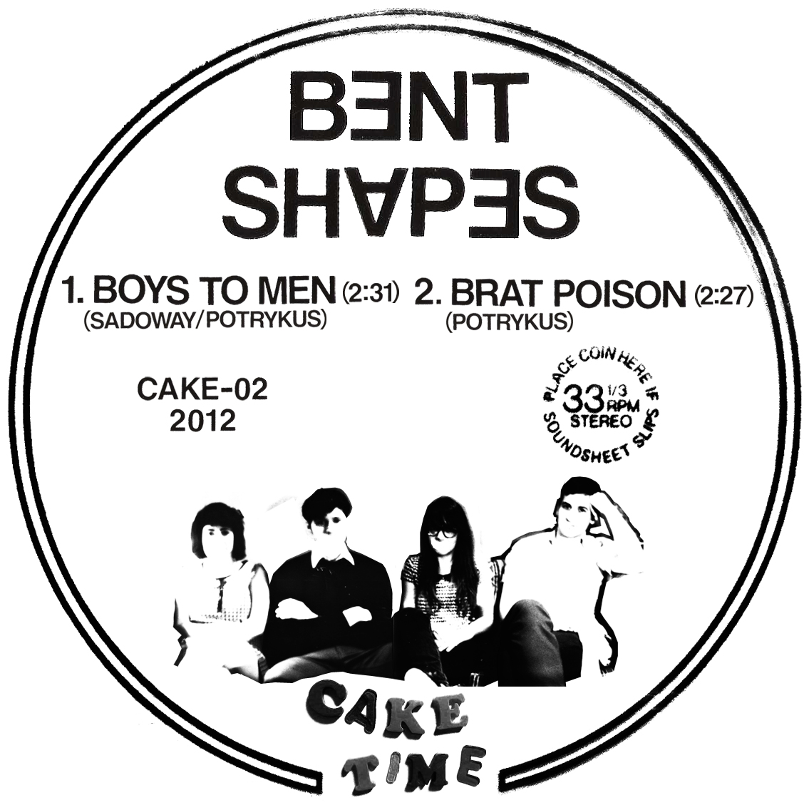 Tracks 1 and 2 written by Ben, Track 4 by Andy, Track 3 by Andy and Ben. Recorded by Erik Szyska at Juan's Muffins/The Savage Garden in Brighton, MA. Mixed by Erik and Andy. Mastered by Emeen Zarookian. Design/layout by Ben. Photo by David Goodrich. Released on Cake Time Records, 2012.