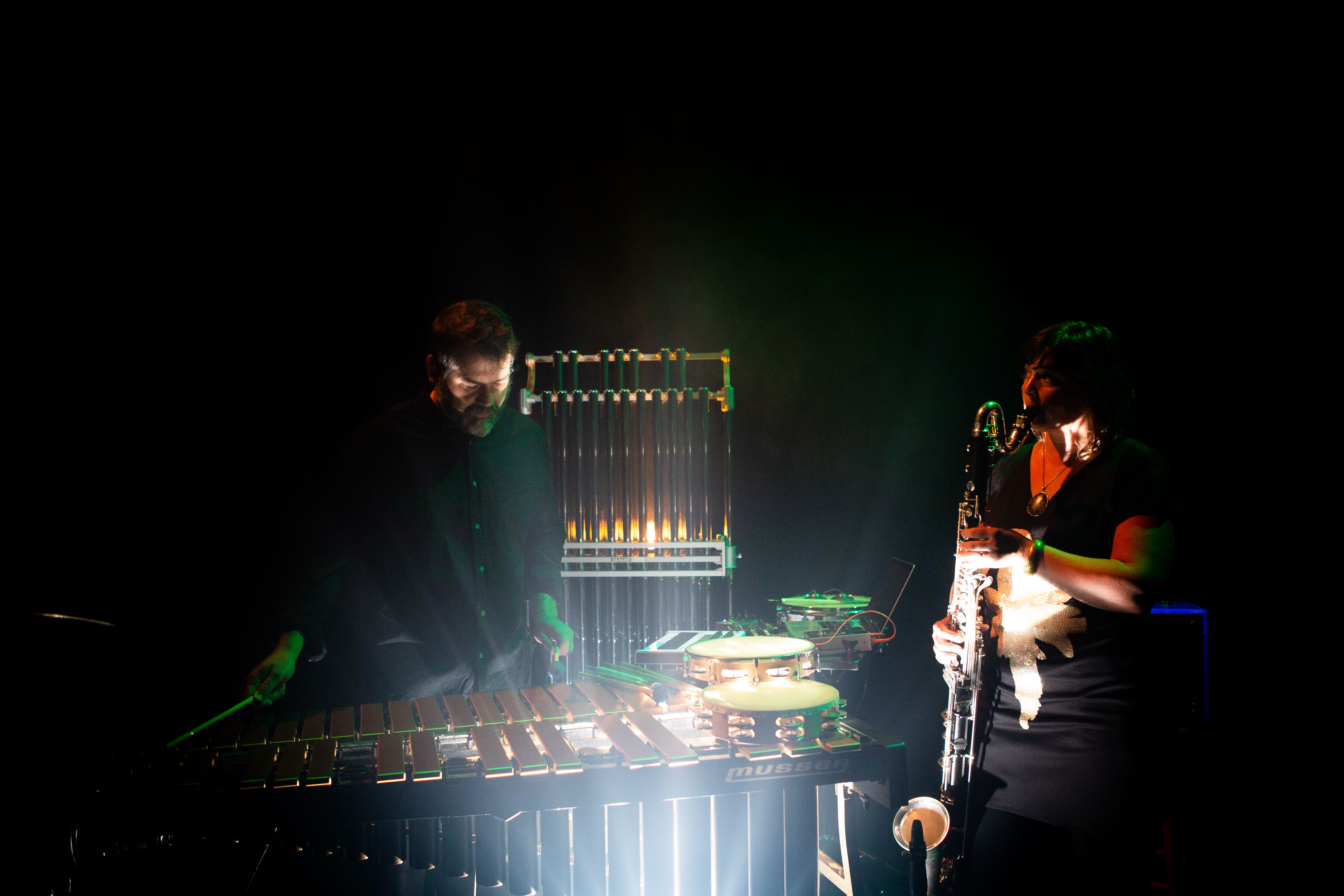 CHOROCHRONOS is a collection of four gorgeous experimental works for clarinet, percussion, and electronics. Red Desert Ensemble (clarinetist Katie Porter and composer/percussionist Devin Maxwell) lovingly recorded duos they've performed for almost two decades in small spaces, for even smaller audiences all over the US (and Canada) by composers André Cormier, Lucie Vítková and Michael Pisaro alongside a huge new spectral work for clarinet and electronics by Maxwell.
