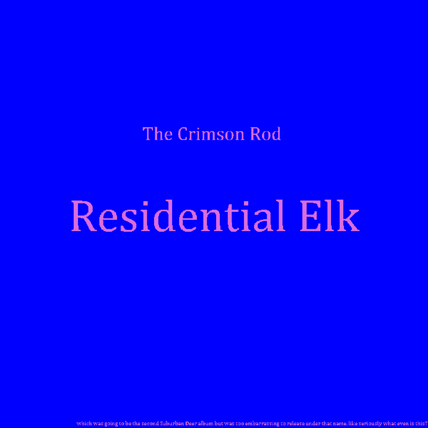 Suburban Deer is my mathgaze project. I mention it here because this was originally the second Suburban Deer album, but it wasn't coming along quite right so I made a different second album and planned to release this third. Then I had a better third coming along and with this being fourth the quality would just be such a weird drop, so now it's a Crimson Rod album instead because this place apparently has zero standards. I sincerely don't think it's a bad album and consider several of the songs here to be among my favorites but it probably takes a special kind of person to enjoy this music and statistically speaking you're not that person. But if you are, enjoy! Better to release niche jank that someone might like than to keep them from ever finding out, yeah?