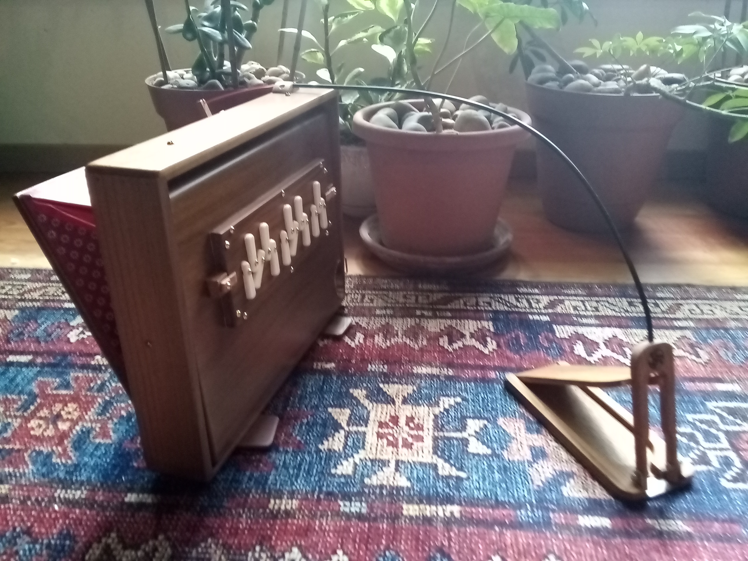 6 of the 11 tracks on Wavelengths were built around the drone of the shruti box. The shruti box is based upon an ancient Chinese instrument called the sheng. It was further refined in India and is now most commonly associated with Indian classical music. It is a wooden box with back and front panels that open to reveal large and small bellows (think the breathing aspect of an accordion). The bellows are the lungs of the instrument. They open and close in response to one another, pushing air across metal reeds and out small holes on the front panel arranged in the form of a one octave keyboard, low G to high G. Though usually pumped with the hands, my shruti box has a foot pedal that can be attached allowing me to pump the bellows with my foot, freeing up my hands to simultaneously play another instrument. This beautiful instrument was expertly built by Stefan Cartwright of the Shruti Box Company in Wales, UK. In each song in which it appears, I used two notes: the root and perfect 5th of the song’s key. These 6 tracks traverse the first 6 turns of the circle of 5ths (C to B/noon to 5:00) though they don’t appear in that order (the order was decided based on how I felt the tracks would best flow from one to the next and tell the story of the album). On future albums, I plan to complete this journey around the circle of 5ths (F# to F/6:00 to 11:00). Mirrors is noon on the circle of 5ths: key of C, root note of C paired with a perfect 5th, G. Though I was happy with how the mic captured the Shruti Box on each track, this one was my favorite. It seemed to pick up some particularly majestic overtones.